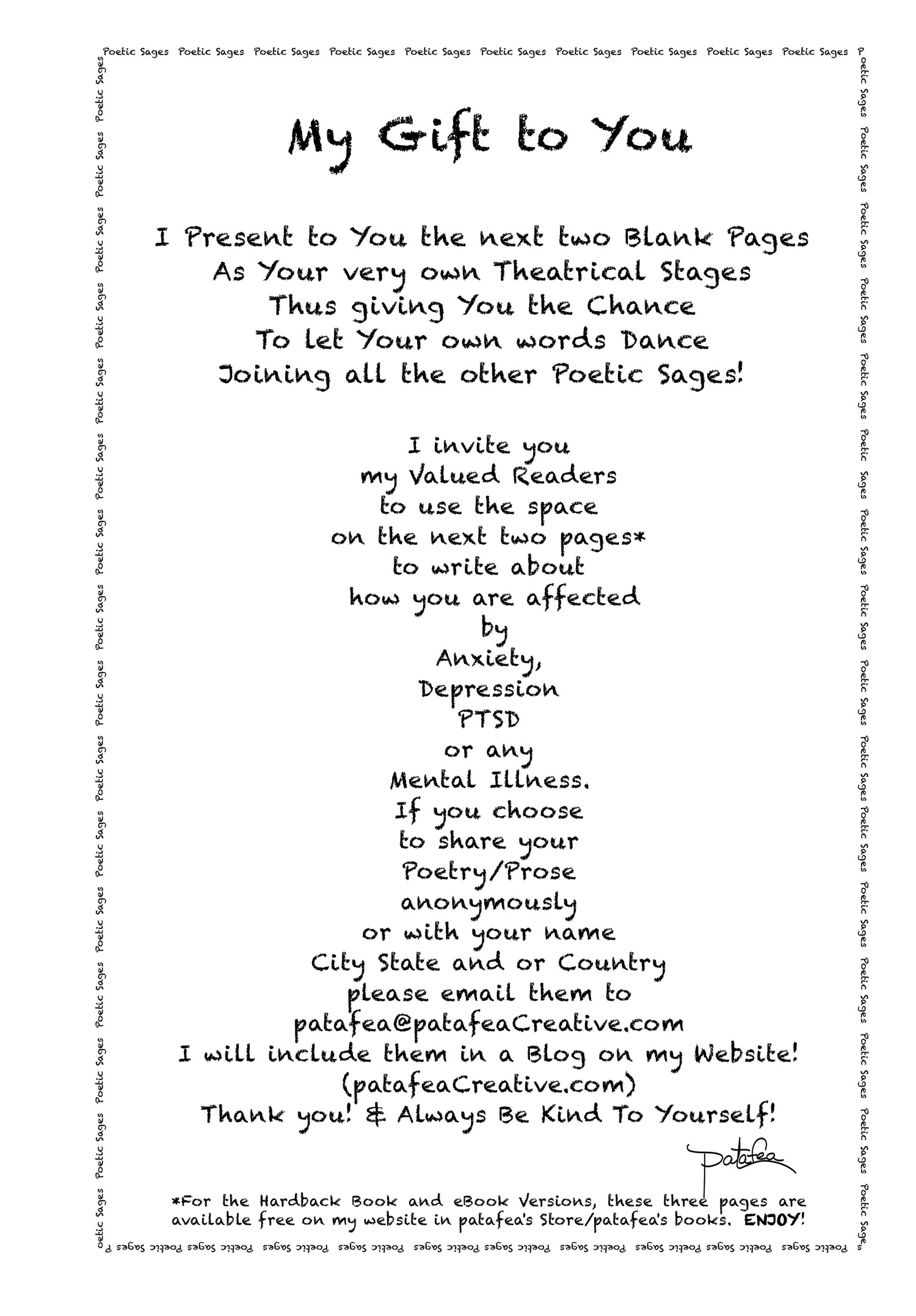 MY GIFT TO YOU... Be a Poetic Sage and write about your own Glimpse into Mental Illness (Depression, Anxiety, PTSD, etc.), on these two Blank Pages! Express Your Journey!