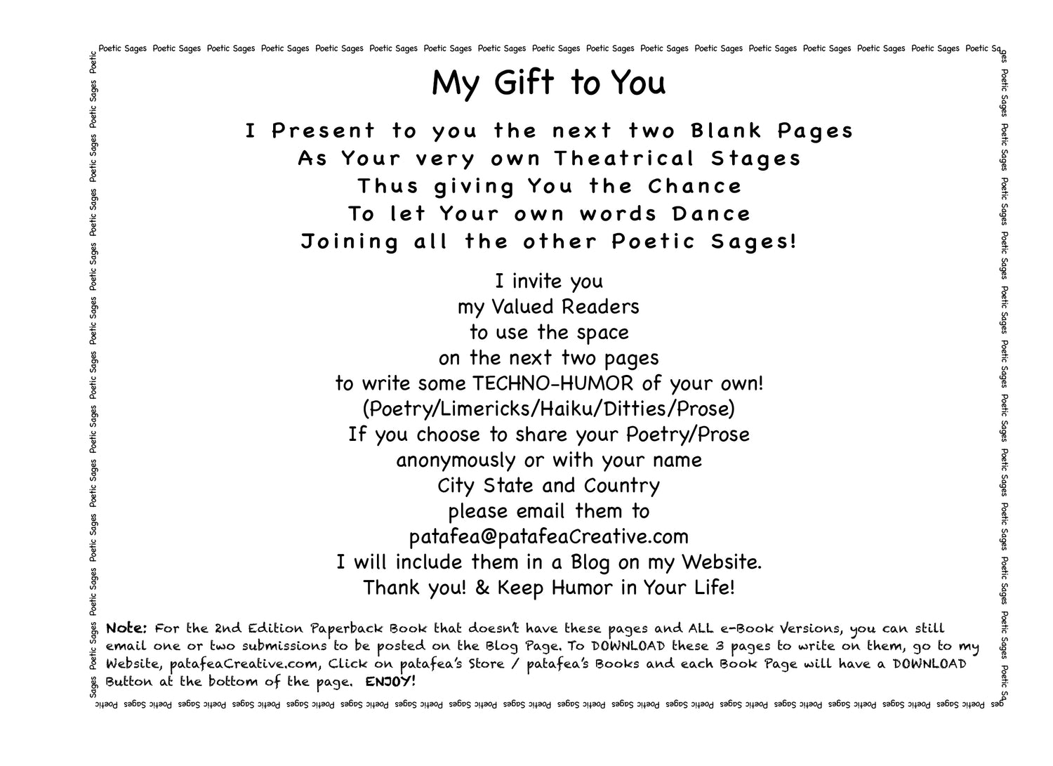 MY GIFT TO YOU......Be a Poetic Sage and write your very own TECHNO-HUMOR on these two Blank Pages! ENJOY!