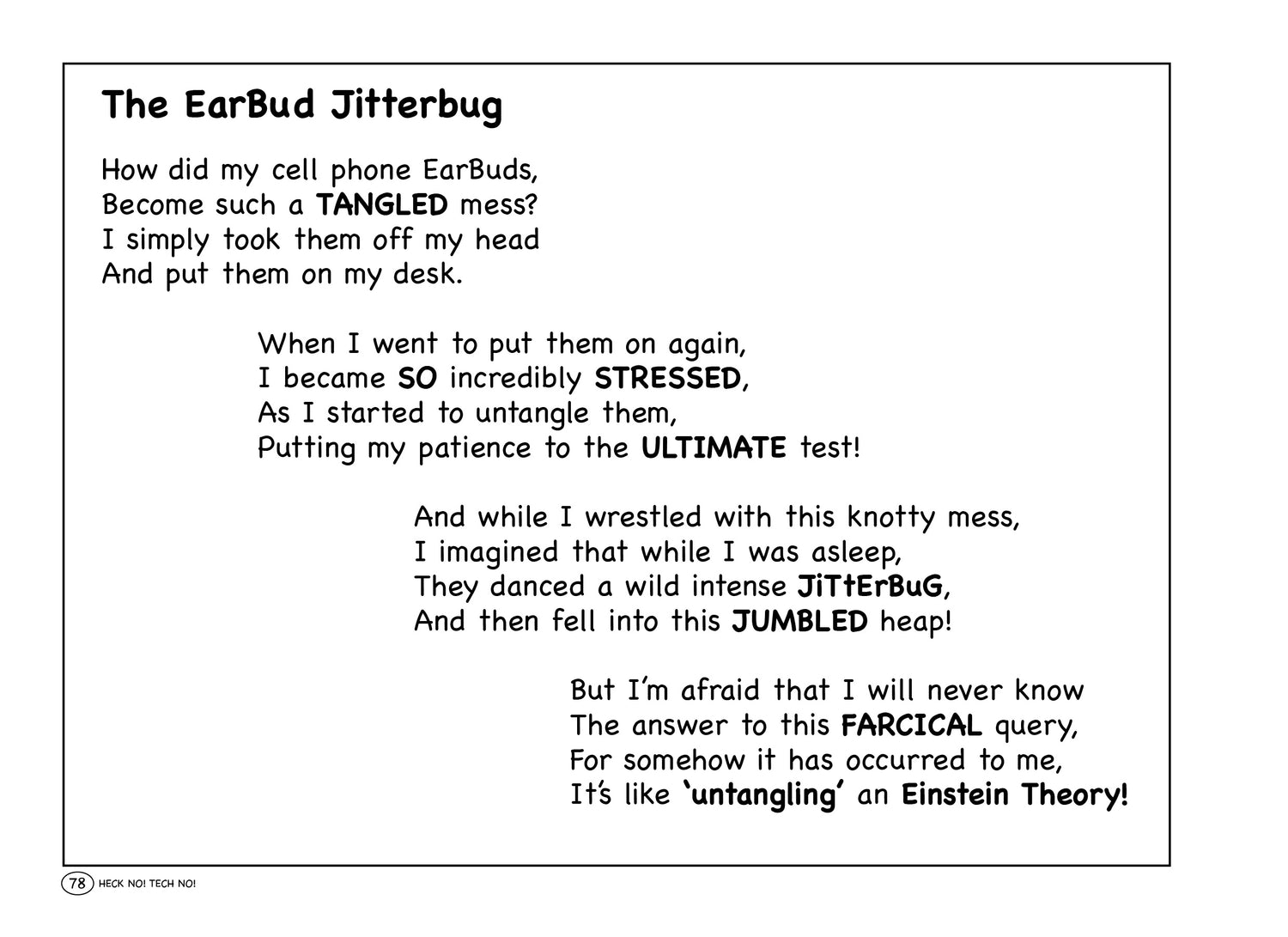 P.S.S. In your submission email, please share with me what your favorite Poem is in HECK NO! TECH NO! A Humorous Glimpse at the Madness of Technology! Thanks! -