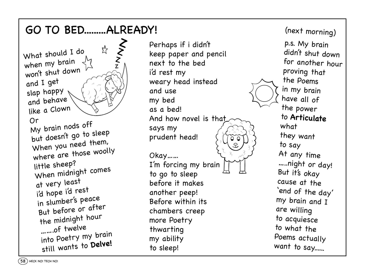 NOTE: DOWNLOAD The 3rd Edition of HECK NO! TECH NO! A Humorous Glimpse at the Madness of Technology! has 3 additional pages at the end (not in this 2nd Edition), that 'Gifts' to you, the Readers, my Poetic Sages, 2 Blank Pages on which to write your own Poem(s), Limericks, Haiku, FreeVerse, Prose, etc.) about TECHNO-HUMOR. Scroll down to DOWNLOAD these 3 pages. (Preview 2 of the pages just above the DOWNLOAD Section. ENJOY!