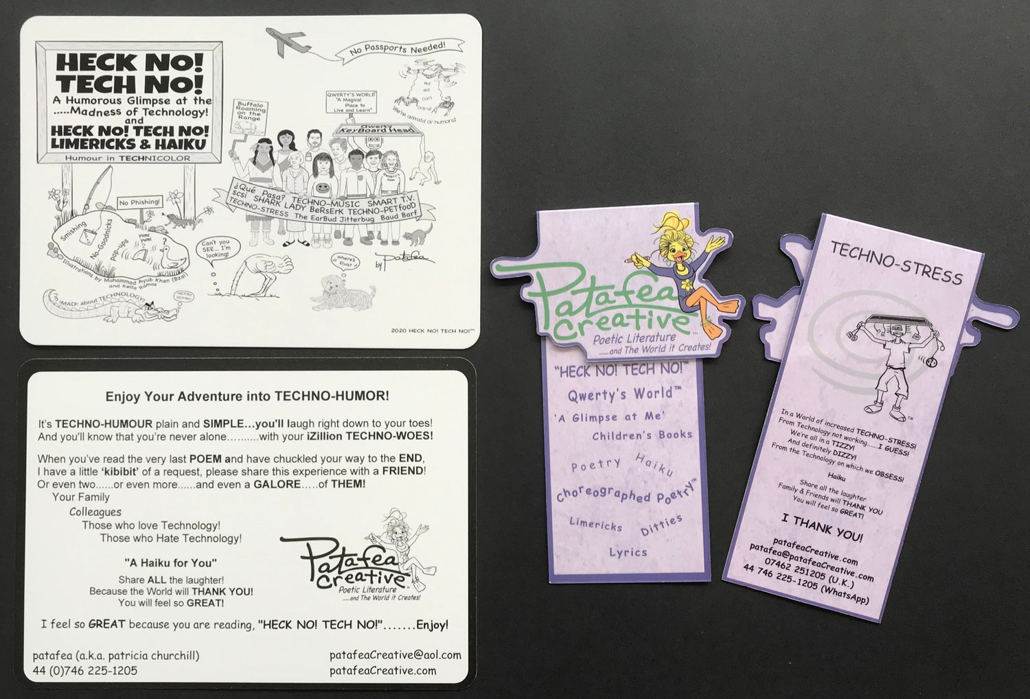 NOTE: Bespoke Magnetic Bookmarks To receive the Bespoke BookMark & PostCard when you order HECK NO! TECH NO! A Humorous Glimpse at the Madness of Technology! (3rd Ed.) from Amazon, please go to the Contact Page at patafeaCreative.com and send your Amazon Proof of Purchase, email, phone and mailing address, and we will send you the Bespoke Magnetic BookMark and PostCard with Compliments from patafeaCreative!